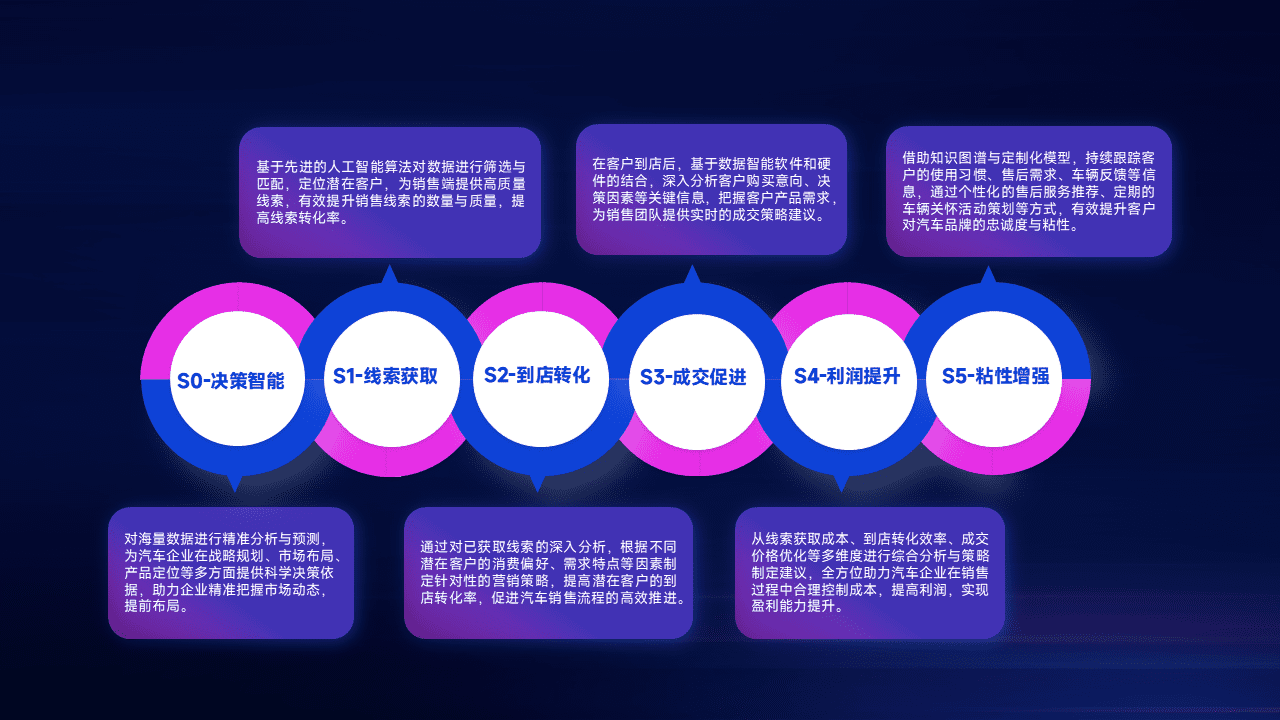 通过拓宽潜在客户来源、、、优化线索分配并提高到店转化率,,,以增强销售效率。。。同时,,,利用线索数据不断优化分析模型,,有效提升转化率,,,,扩大营销影响力。。